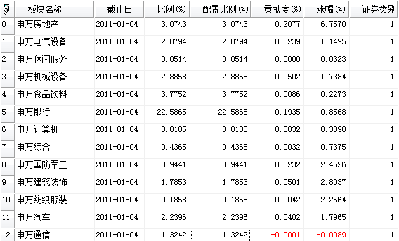 配置比例(%)=所指证券EndT-1这天的流通市值/数组t中所有证券在EndT-1这天的流通市值总和*100。
