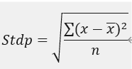 STDEVPOF (Expression:TExpression[;BoolConditionExp:TExpression[;N:Integer[;MovingFirst:Bool[;CacheId:String]]]]) :real