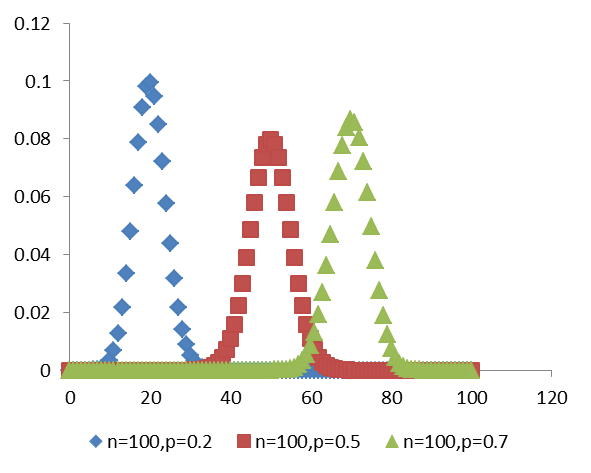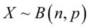 如果随机变量X服从参数为n和p的二项分布,我们记