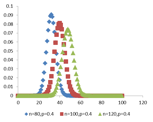图5-6 p变化引起的概率函数的变化图5-7 n变化引起的概率函数的变化