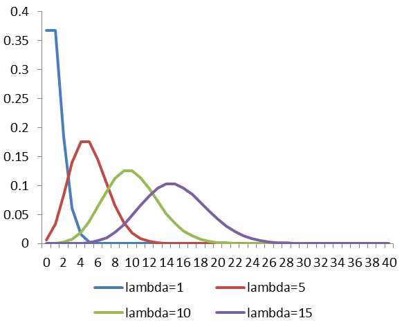 泊松分布适合于描述单位时间内随机事件发生的次数.如某一服务设施在一定时间内到达的人数,电话交换机接到呼叫的次数、汽车站台的候客人数、机器出现的故障数、自然灾害发生的次数、DNA序列的变异数、放射性原子核的衰变数等等.
