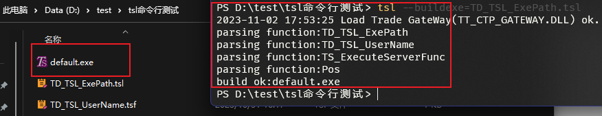 输出:在tsl文件同目录下生成.exe可执行文件。默认是一个控制台应用