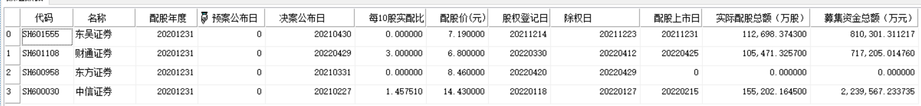 //返回上证A股在20201231时配股的相关数据