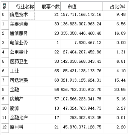 | 返回 | Array | 数组类型,返回指定日指定沪深港板块的行业配置情况 |
