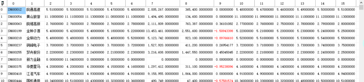 RD()函数教学函数。得到Bkname板块下的股票的24项实时数据。