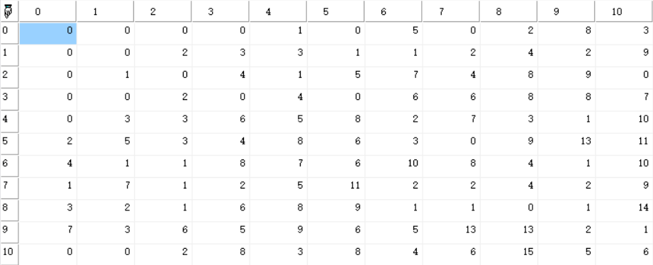 当type取值为2时,返回一个拥有10×10的二维随机数组,且每个元素的值小于元素的行列下标之和;