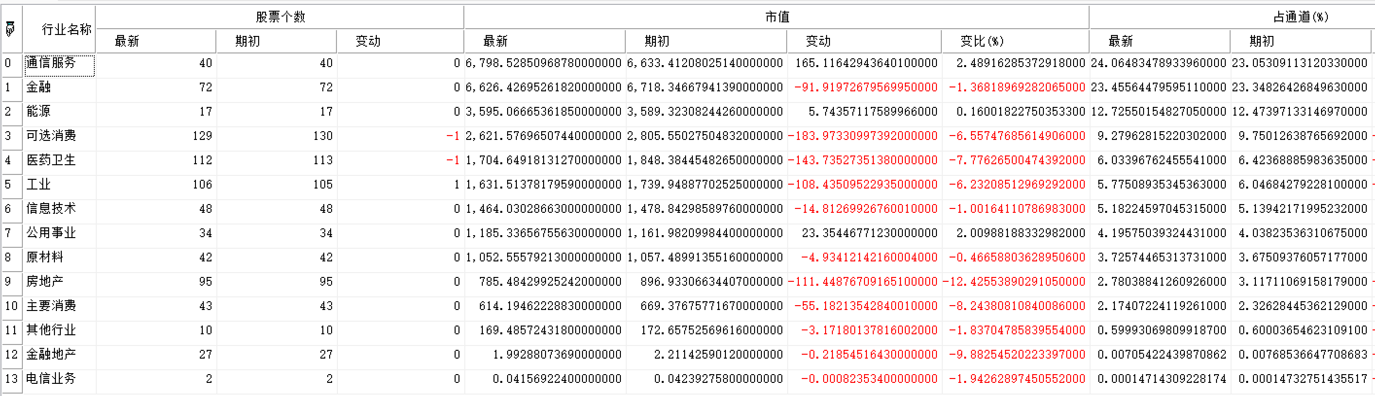 报表,沪深港通板块最新行业市值及最近1月变动(金额单位:亿元/亿港币)