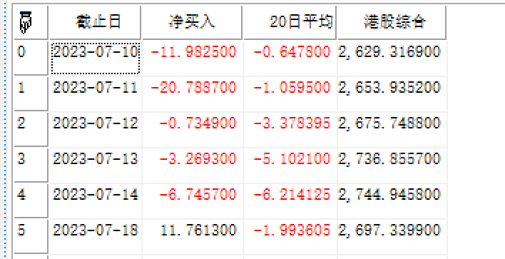 | 返回 | Array | 二维数组,港股通指定时间净买入数据(日线)。 |