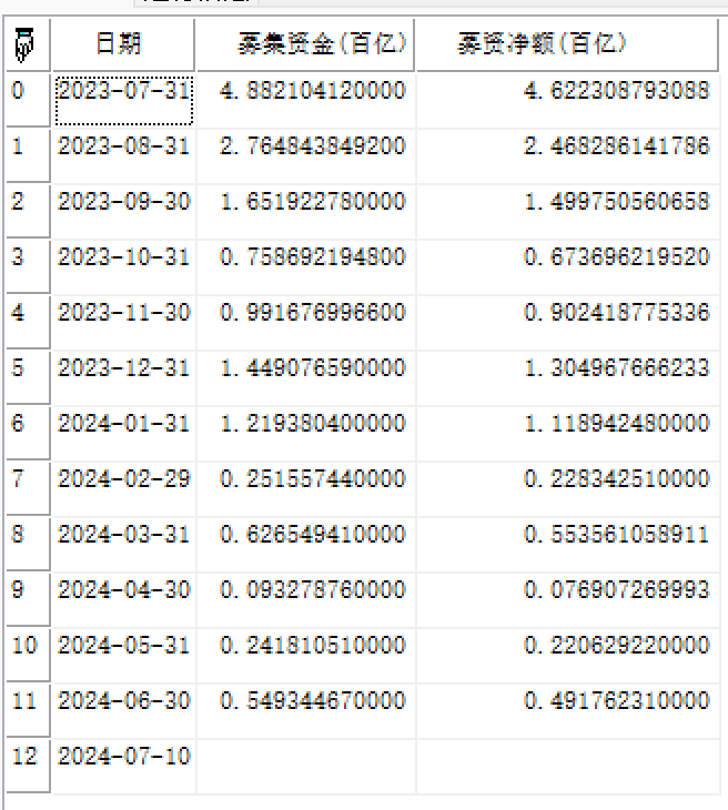 | 返回 | Array | 数组,指定板块从开始日期到截止日期的汇总股票个数、募集资金、募资净额(不累计求和)。 |