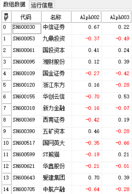 数组。101Alpha测试结果。