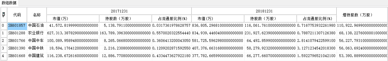 | 返回 | Array | 数组。基金增持/减股票统计。 |
