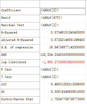 | 返回 | Array | 一维数组,包含多个回归结果及检验信息 |