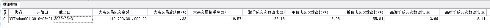 | 返回 | Array功能:获取指定股票池区间大宗交易指标 | 数据值 |