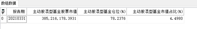 | 返回 | Array功能:获取主动股混型基金池A股配置指标:股票市值(万)股票仓位(%)市值占比(%) | 数据表 |