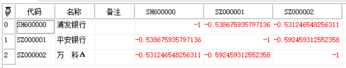 二维数组类型,股价涨幅反向相关性矩阵