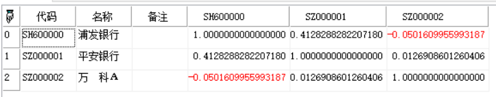 二维数组类型,高频股价涨幅--相关性矩阵
