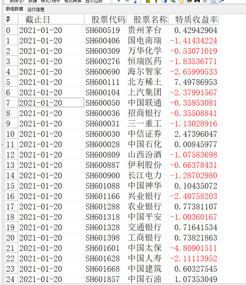 | 返回 | array | 数组, 股票池指定日特质收益率(%) |