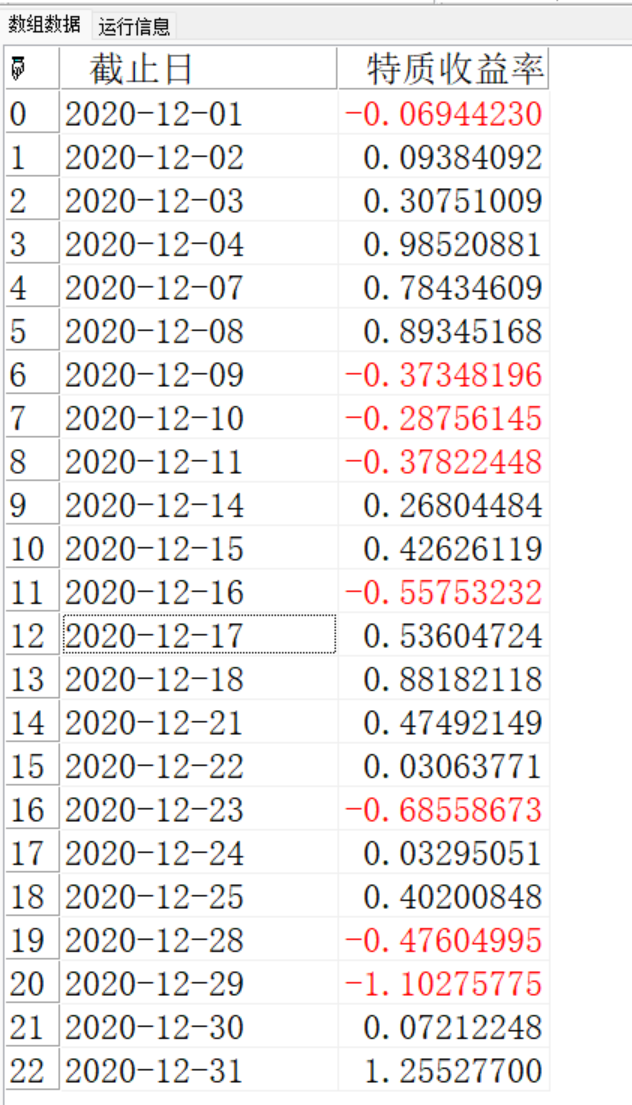 //提取中证全指市场上,浦发银行在20201201~20201231日的特质收益率序列